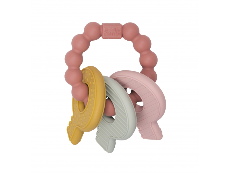 Měkké silikonové kousátko s různými texturami láká dítě ke zkoumání v ústech a pomáhá tak při prořezávání prvních zoubků. Kousátko v podobě klíčů na kroužku má tvar pro snadné uchopení dětskými ručičkami.