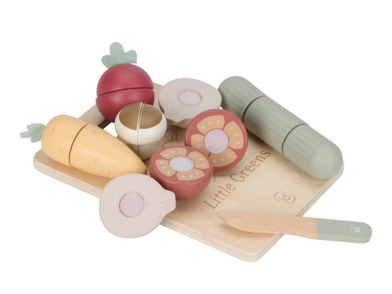 Vařte jako profík a učte se jíst zeleninu hrou! Tato sada dřevěné krájecí zeleniny podporuje dětskou představivost, jemnou motoriku i chuť ke zdravému jídlu. Sada obsahuje mrkev, okurku, rajče, cibuli, červenou řepu a žampion – všechny druhy zeleniny lze dřevěným nožem rozkrojit napůl a díky suchému zipu je snadno spojíte zpět.
