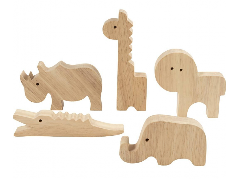Originální sada dřevěných safari zvířátek pro dozdobení a hraní. Roztomilé figurky ze masivního dřeva si děti mohou vyzdobit podle vlastní fantazie – barvami, fixami nebo kreativními hmotami. Zvířátka jsou dost pevná na hraní a zároveň vypadají skvěle jako dekorace v dětském pokoji.