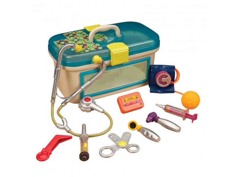 Oblíbená hra na doktora může začít! Vše, co malý lékař nebo lékařka potřebují, najdou v pevném kufříku Btoys s uchem na přenášení. Kufřík obsahuje otoskop, teploměr, stetoskop se zvukem tlukotu srdce, tlakoměr,pinzetu, zrcátko, stříkačku, bezpečné nůžky a pípátko.
