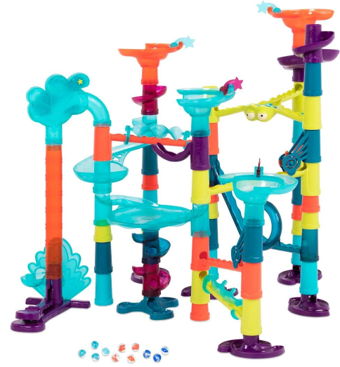 Maxi kuličková dráha nabízí nekonečnou variabilitu při stavění dráhy z barevných, odolných dílů. Postavte spolu s vašimi dětmi dráhu obsahující vysoké věže, kroutící se mosty i různorodé pohyblivé části a pak si užijte sledování pohybu kuliček celým bludištěm. Pro ještě větší efekt dráha obsahuje i díl s barevnými světýlky.