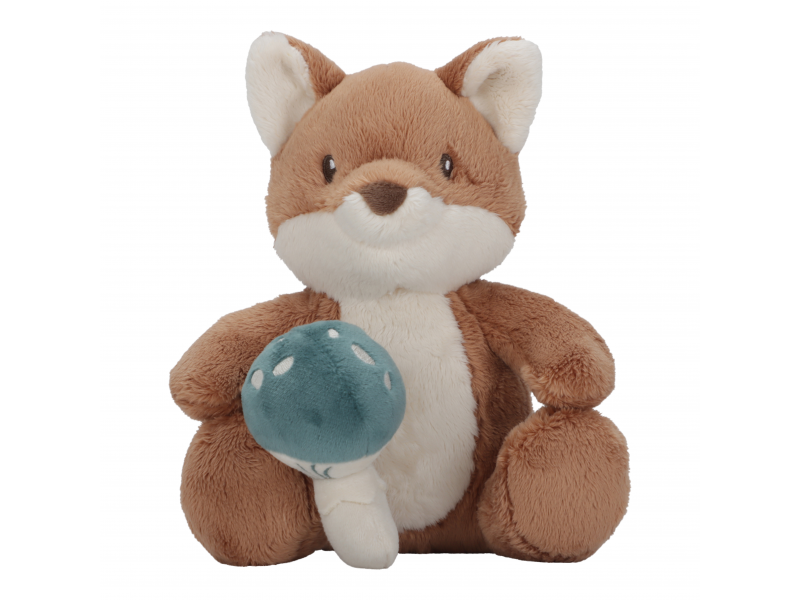 Jemná plyšová hračka v podobě veselé lišky s houbičkou je ideální jako mazlík do postýlky pro lepší usínání vašeho dítěte. Liška umí sedět a může se tak stát i krásnou dekorací v dětském pokojit.