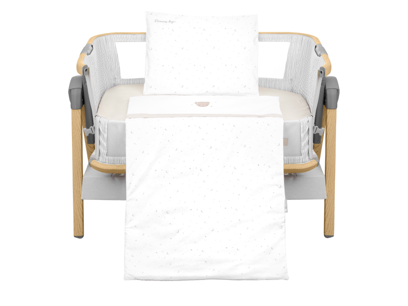 Kompletní ložní sada do malé postýlky nebo kolébky obsahuje polštářek, peřinku, povlečení na polštářek a peřinku a natahovací prostěradlo. Povlečení je vyrobeno z jemné, prémiové 100% bavlny s Oeko-Tex® certifikací.