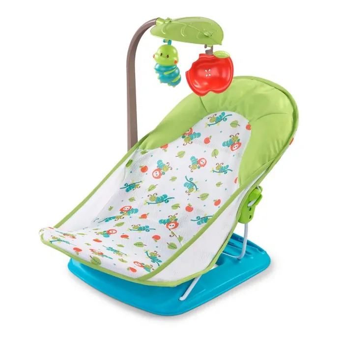 Okoupejte vaše miminko bezpečně s pomocí této koupací sedačky s hrací lištou. Rám vytvořený z měkké síťoviny umožní vašemu nejmenšímu pohodlnou pozici při koupání a zároveň jej bezpečně ukotví.