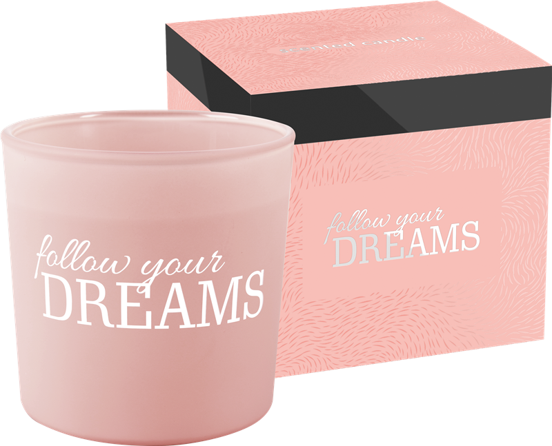 FOLLOW YOUR DREAMS je jedna ze tří svíček z kolekce svíček v matném skle se dvěma knoty, které umožňují rovnoměrné hoření svíčky, vše uzavřeno v elegantní kartonové krabici. Svíčka FOLLOW YOUR DREAMS s dobou hoření až 40 hodin vytváří ovocnou explozi manga, kokosu a citrusů, která zpříjemní chvíle milovníkům osvěžujících vůní.