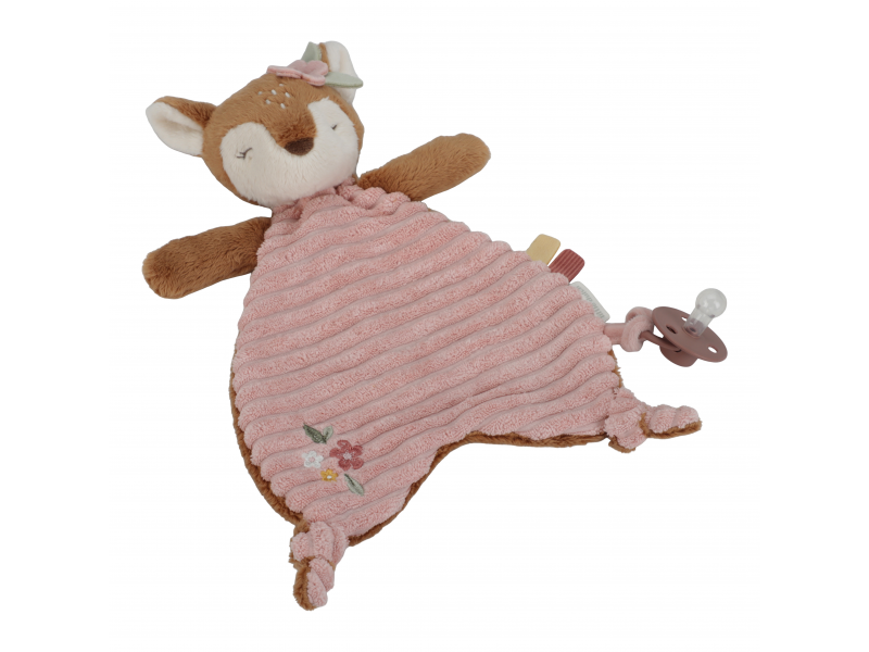 Plyšový muchláček v podobě něžné srnky a úchytem pro šidítko láká ke hraní i mazlení. Muchláček je je vyroben z velmi jemného a příjemného materiálu a je ideální jako společník do postýlky pro klidné usínání.