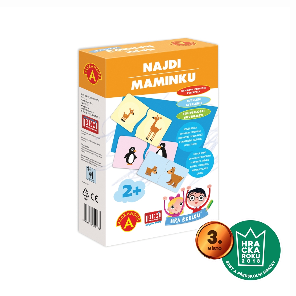 Naučné hraní pro malé zvědavce - HRA ŠKOLOU® – NAJDI MAMINKUcentrální sklad 1 ks350 Kč/ ks289 Kč bez DPH