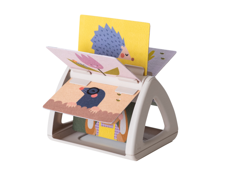 - Od 3 měsíců: výrazné barevné obrázky a chrasticí zvuk při otáčení jednotlivých stránek upoutají pozornost dítěte při hře na bříšku