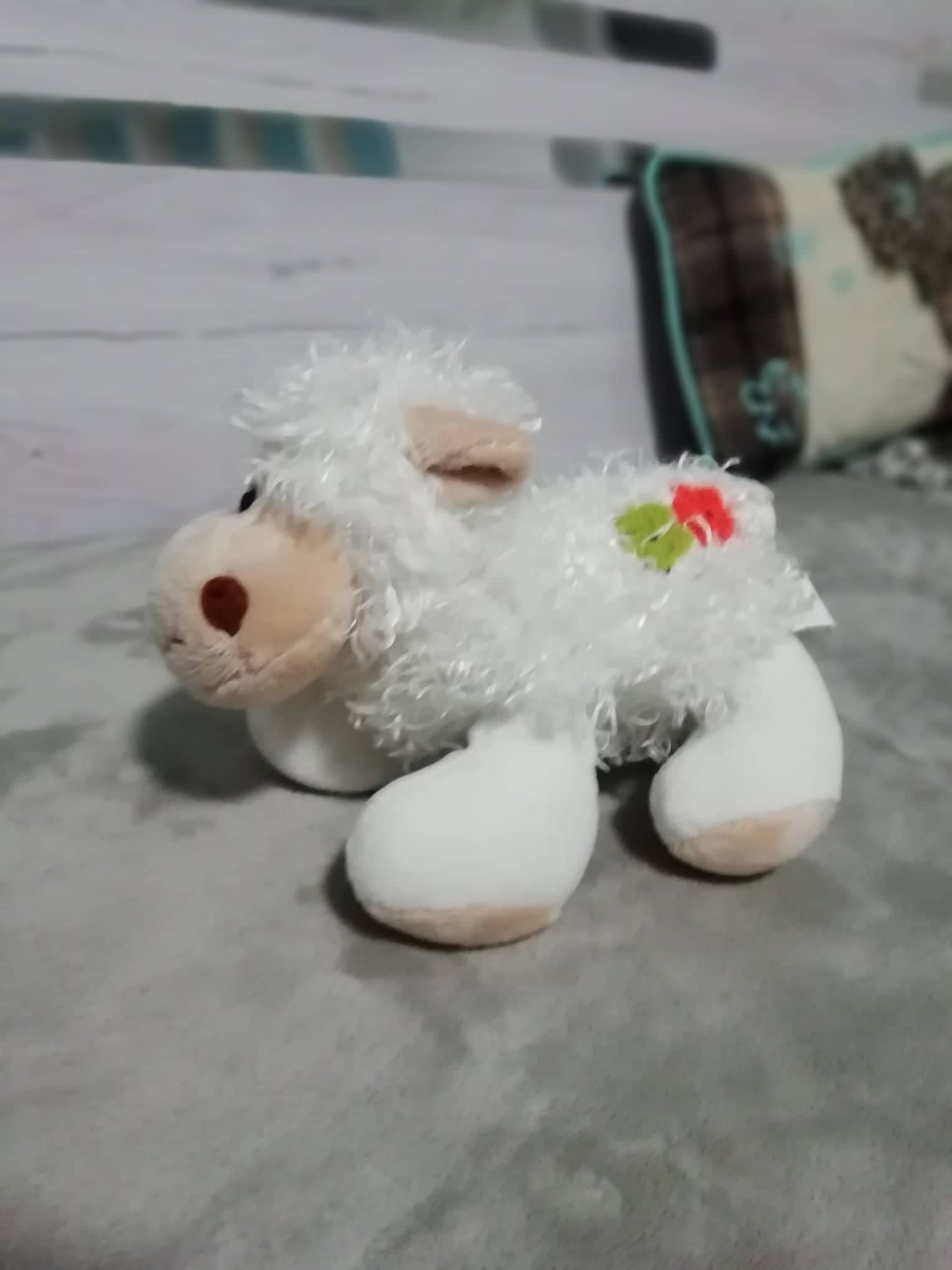 Plyšová kudrnatá ovečka s kytičkami. Neponičená a čistá.