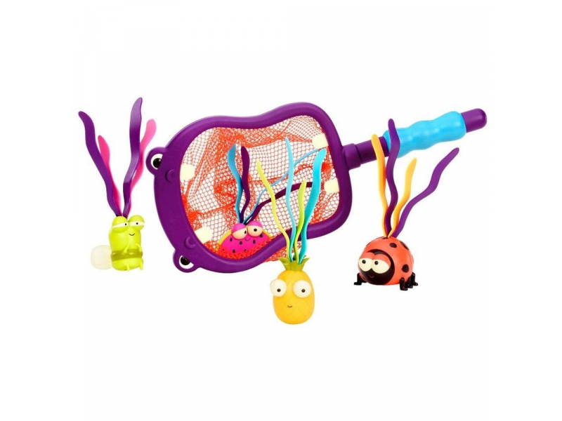 Potápějí se vaše dětí rády? Pak budou nadšené z tohoto originálního podběráku ve tvaru hrocha a čtyř hraček pro potápění. Vhoďte hračky na dno bazénu a pokuste se je vylovit podběrákem nebo chytit rukou za vlající pásky.