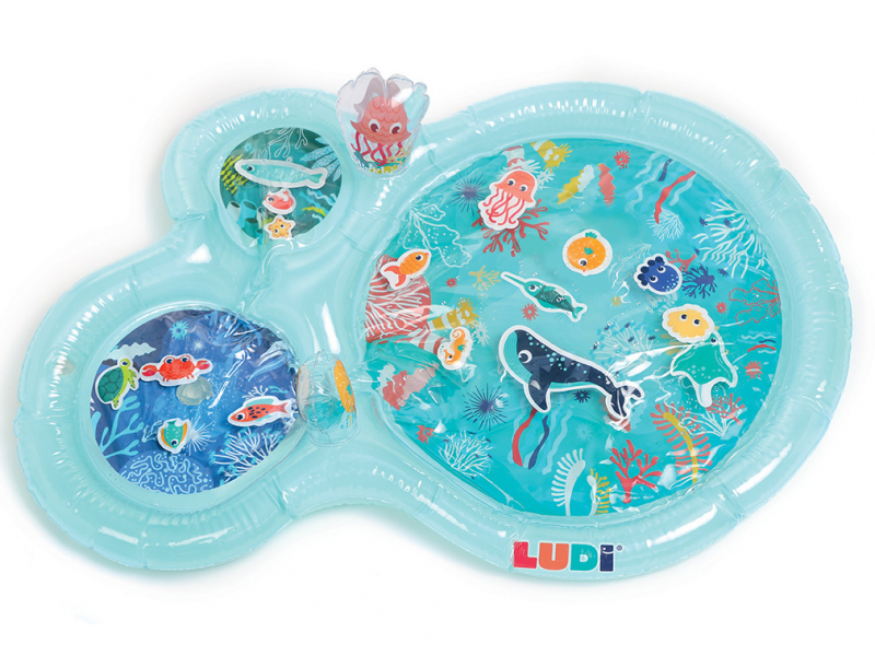 Interaktivní podložka na hraní naplněná vodou připomíná skutečný podmořský svět s vodními živočichy. Figurky mořských tvorů se uvnitř ve vodě začnou pohybovat, kdykoli dítě na podložku sáhne rukou. Jednotlivé části podložky jsou propojené, takže když se dítě o podložku opře, voda proudí mezi jednotlivými částmi. Na nafukovacích okrajích jsou umístěna dvě nafukovací madla, která při zmáčknutí pískají a cinkají.