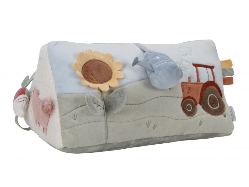 Polštářek z jemného, měkkého materiálu s krásnými motivy života na farmě je speciálně navržený, aby podporoval hraní dítěte na bříšku. Hračky na polštářku i originální vyšívané aplikace lákají dítě ke zkoumání a pozorování. Každá strana polštářku je jiná, takže stačí polštářek otočit a nabídnout dítěti nové podněty k zabavení i rozvíjení jeho jednotlivých smyslů.