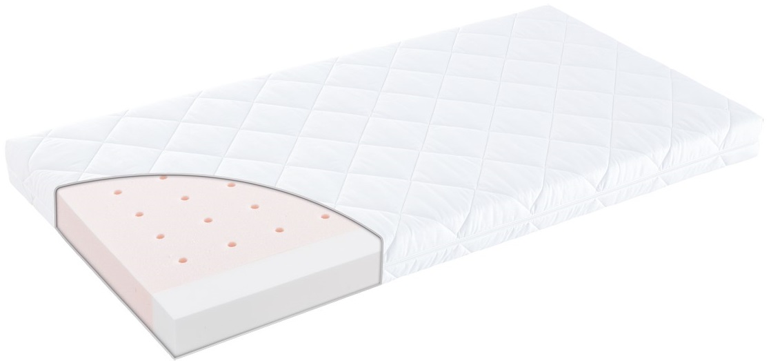 Tato matrace od firmy Träumeland má matracový potah z bavlny a polyesteru prošitý pracím polyesterovým vláknem. Potah je snímatelný a lze ho prát na 60°C. Jádro matrace pak tvoří kvalitní, bodově pružná studená pěna se svislými vzduchovými kanálky a zpevněnými hranami na podelných stranách. Pohodlí pro dítě Jádro této matrace poskytuje Vašemu drobečkovi pohodlí přiležení a odlehčuje jeho páteři. Svislé vzduchové kanálky zajišťují přívod čerstvého vzduchu k Vašemu děťátku a odvádějí vydechovaný CO2. Pevné hrany na podelných stranách matrace zase posytují Vaší ratolesti bezpečí při nášlapu, když se zkouší postavit v postýlce. Matrace Stersnschuppe vrchní látka: 44% balvny, 56% polyester prošití: 100% polyesterové vlákno výška matrace: 10 cm vzduchové kanálky pevné hrany vhodná i pro alergiky objemová hmotnost: 35 kg/m3 výška matrace: 10 cm UPOZORNĚNÍ: matrace je vakuována a dodávána ve srolované formě. Tento způsob balení nijak neohrožuje kvalitu matrace. Po opatrném sejmutí fólie se matrace rozvine a během 3 – 4 minut získá zpět 90 % svého objemu. Dosažení 100 % objemu může matraci trvat dva, maximálně tři dny. Upozornění Dle nejnovější bezpečnostní normy je u všech matracových potahů používán Safety zip. Tento zip nemá jezdce, díky čemuž není možné, aby ho dítě rozepnulo a otevřelo tak potah matrace. V případě, že chce rodič zip rozepnout, je nutné použít dočasnou pomůcku (třeba kancelářskou sponku nebo drátek…). Bez této pomůcky (jen prsty) zip rozepnout nelze, protože se musí uvnitř povolit pojistka.