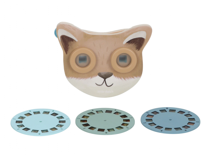 Prohlížeč příběhů Little Dutch je kouzelná hračka, která děti vtáhne do světa vyprávění a fantazie. Má podobu roztomilé lišky a funguje jednoduše: stačí otáčet kotoučky a před očima se odvíjejí obrázkové příběhy z lesa. Součástí jsou tři výměnné kotouče s příběhy kamarádů z lesa. Ideální pro klidné chvíle před spaním i společné vyprávění s rodiči. Hračka podporuje rozvoj řeči, představivost a schopnost tvořit vlastní příběhy.