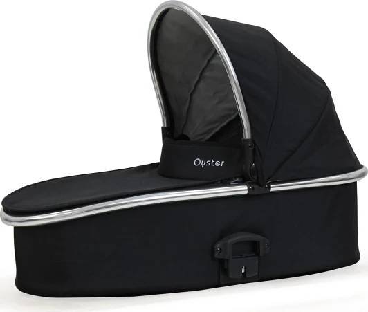 Rám kočárku Oyster 2 je dodáván ve verzi mirror (stříbrný s vysokým leskem) s černý hlubokým lůžkemí (s integrovanou moskytiérou), koženkovou rukojetí, madlem, prostorným nákupním košíkem pod sedací částí, pláštěnkou a koly ve vysokém lesku. Součástí kočárku je kryt na hohy.