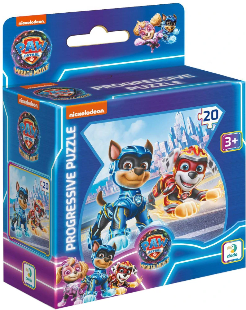 Poskládajte si puzzle s motivem Tlapkové patroly ve velkofilmu (Paw Patrol: The Mighty Movie). Puzzle obsahuje 20 dílků, které rozvíjí dětské schopnosti a cvičí šikovnost.