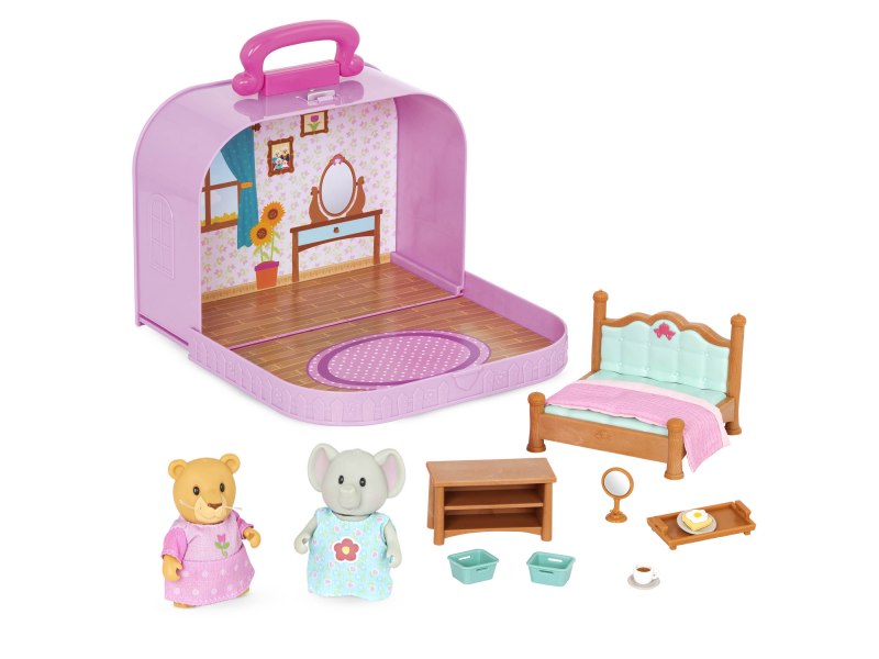 Cestovní sada hraček Li'l Woodzeeze v praktickém kufříku umožní vašemu dítěti hrát si se svými oblíbenými postavičkami kdekoli na dovolené, výletech či během víkendu u prarodičů. Kufřík se po otevření promění v bohatě vybavenou ložnici s nábytkem, doplňky a postavičkami lvice Kya a slonice Lizz.