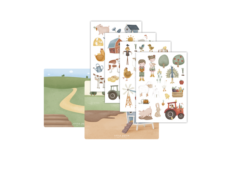 Snímatelné samolepky v podobě motivů ze života na farmě z kolekce Little Dutch Farma jsou určené pro použití na okně, zrcadle či na přiložené papírové čtvrtce s natištěným pozadím s mořským dnem. Samolepky lze snadno odlepit a použít opakovaně.