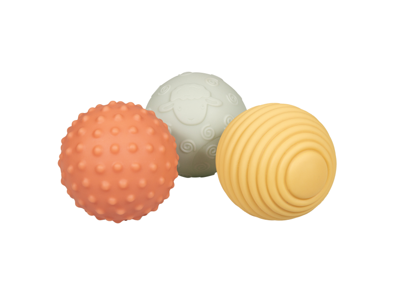 Měkké míčky s různými povrchy pro relaxaci i hru s vaším dítětem. Zkoumání míčku rukama i ústy stimuluje rozvoj smyslů dítěte. Házení, kutálení a chytání míčku pomáhá rozvoji motorických dovedností a koordinace dítěte.