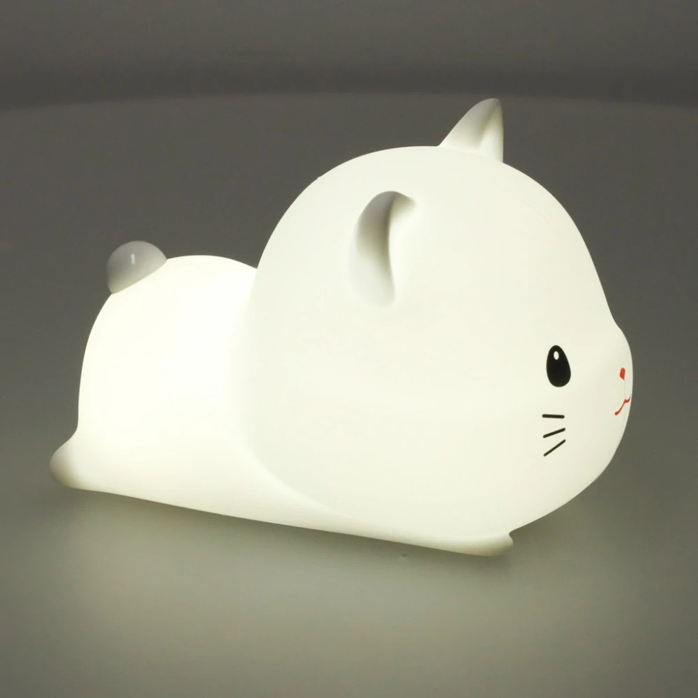 - Silikonová noční lampička pro děti, napájená z USB baterie, bílá RGB, Kočička ležící
