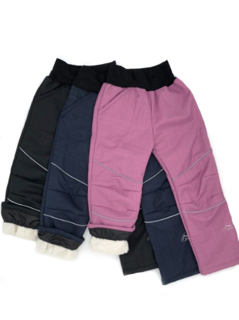 Softshellové dětské kalhoty zimní (zateplené jsou světlým beránkem), s několika výhodami. Hlavní z nich je vysoká kvalita provedení, reflexní prvky, dále regulovatelný úpletový zvýšený pas, originální vypasovaný střih, kapsa, vkusné provedení, spodní vrstva nohavic stažená do nepromokavého nápletu pro přetažení přes boty a zabránění vniknutí sněhu, vlhkosti i zimy.