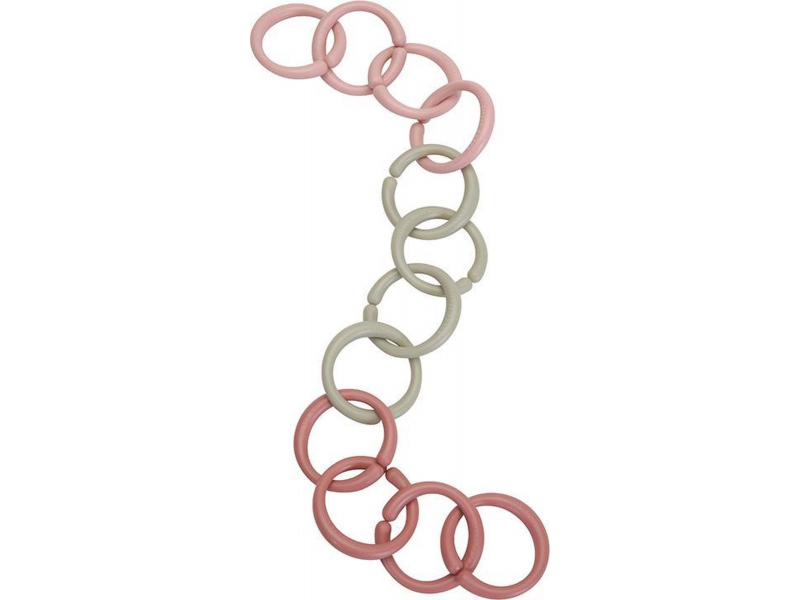 Multifunkční kroužky tvořící po spojení řetěz slouží jako hračka pro děti i jako pomůcka pro připevnění hraček ke kočárku či autosedačce. Dvanáct kroužků vytvoří řetěz ideální délky pro použití v kočárku.