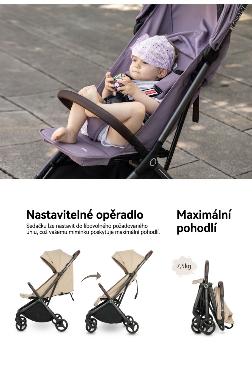 Hledáte parťáka do města i na cesty, který vás nenechá ve štychu? QPlay GRAV je kompaktní sportovní kočárek navržený pro moderní rodiče, kteří oceňují rychlost a pohodlí. Díky unikátnímu systému gravitačního skládání jej složíte doslova jedním pohybem ruky, zatímco v druhé držíte své dítě.