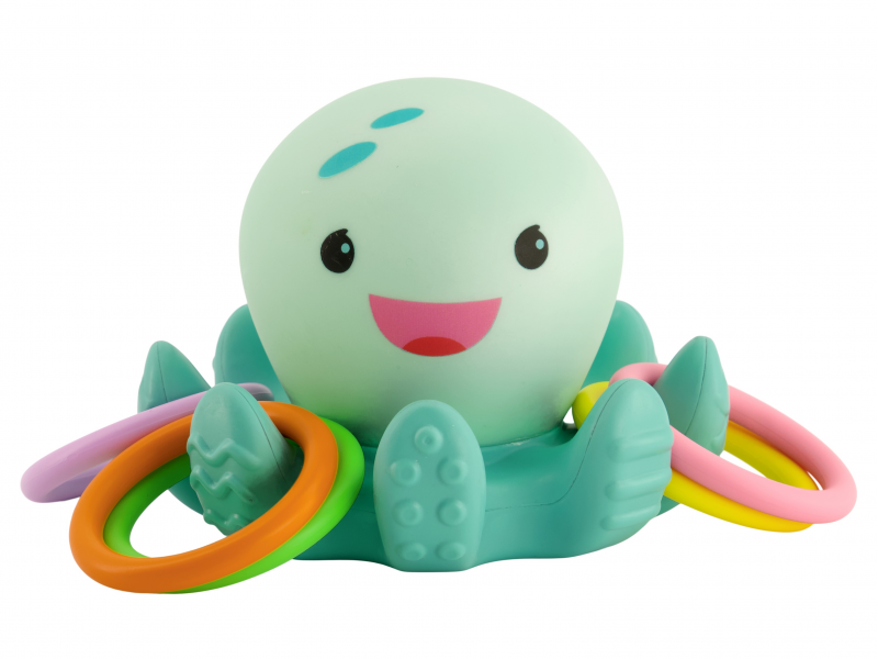 Neodolatelná hračka do koupele v podobě usměvavé chobotnice bude bavit vás i vaše děti. Hračka po vložení do vody svítí a mění barvy, rozsvítit ji můžete i stisknutím senzorů na spodní straně. Součástí hračky je i 5 barevných kroužků, které je možné navlékat na chapadla chobotnice.