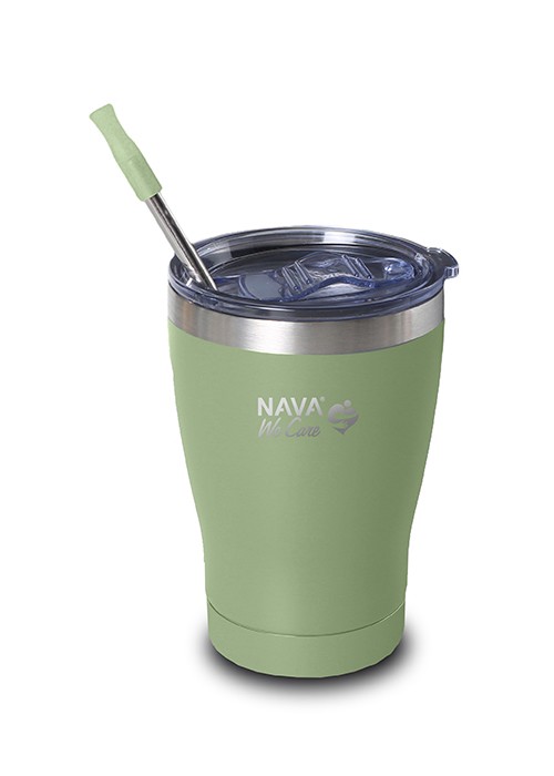 NAVA We Care – Cestovní termo hrnek s nerezovým brčkem a silikonovým náústkem, 360 ml