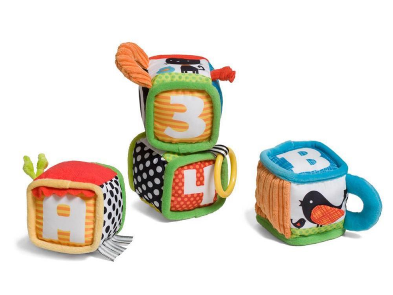 Čtyři měkké textilní kostky nabízí různorodé aktivity a textury ke zkoumání a pozorování. Kostky je možné skládat na sebe i s nimi házet, ve starším věku dítěte s jejich pomocí můžete dítě učit barvy a první písmenka i čísla.