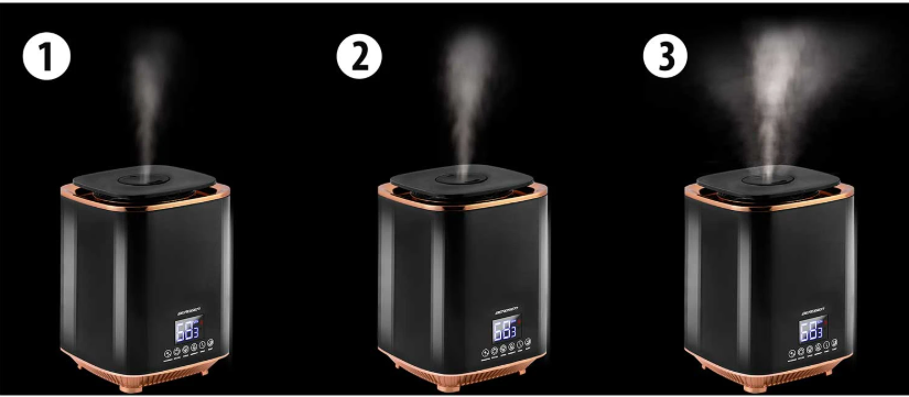 - Nastavení rychlosti/intenzity zvlhčování (3 režimy) a aktivaci nočního režimu.