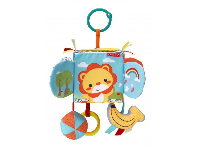 Závěsná textilní hračka s krásnými ilustracemi zvířátek nabízí množství různorodých aktivit ke zkoumání a pozorování včetně bezpečného zrcátka. Jednotlivé části šustí, cinkají či chrastí. Plastový kroužek umožňuje snadné zavěšení na kočárek, postýlku či autosedačku.