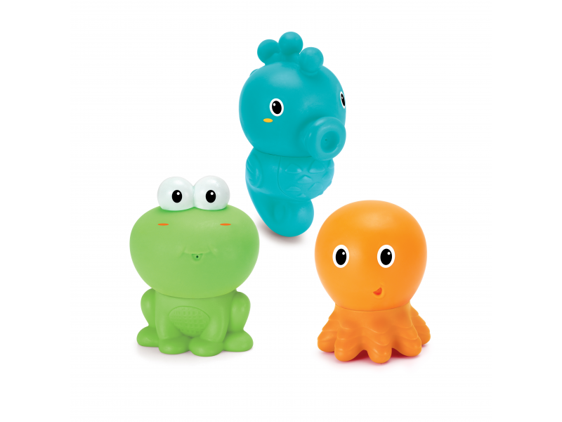 Tři dvoudílné šroubovací postavičky mořských živočichů - chobotnice, žáby a mořského koníka - zajistí vašemu dítěti spoustu zábavy při koupání. Horní a spodní díly postaviček lze spolu libovolně kombinovat a vytvářet tak pokaždé jiné figurky. Při zmáčknutí figurky stříkají vodu pro ještě více zábavy ve vaně.